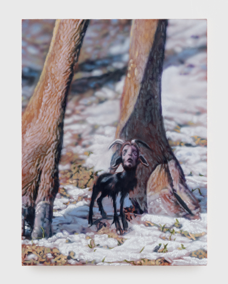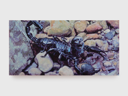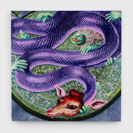 Tim Brawner produces a practice of painting that mines the space between the uncanny and the grotesque. Seeking to produce in the viewer a compelling affect of unease, Brawner utilizes the idiom of illustration to render images of alienation through the purposeful bricolage of disparate representational elements. In each work, a persistently fine, painterly execution meets the artist’s formal drafting process of drawing and montage to achieve what Brawner terms a pathos of ‘weirdness’: a form of defamiliarization which is also a seduction, an entreat, into a strange representational space nonetheless evoking trepidation and dread. These visual chimeras undermine the spectators’ traditional binary frames of reference, eliding at once those of conservative Western Christian morality and those of liberal secular paradigms of Enlightened empathy.