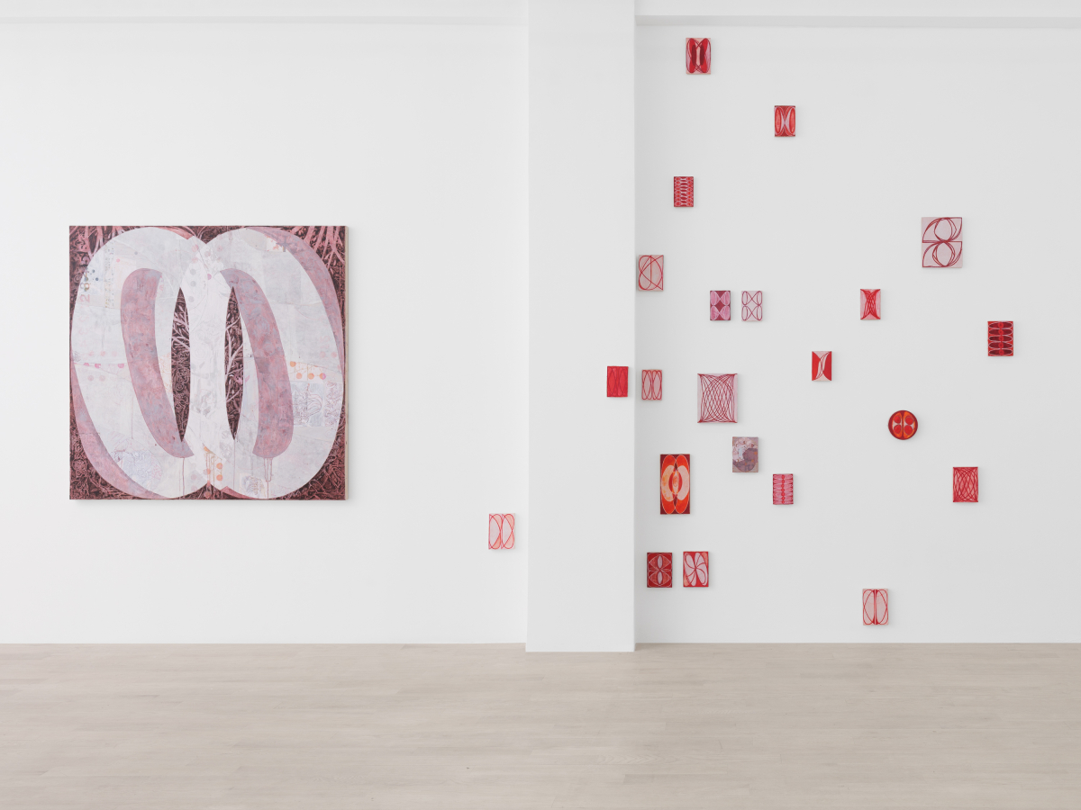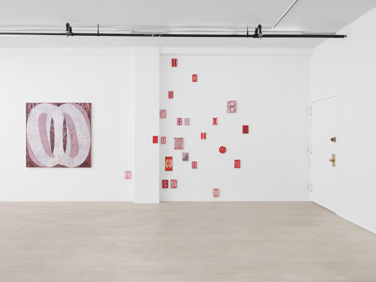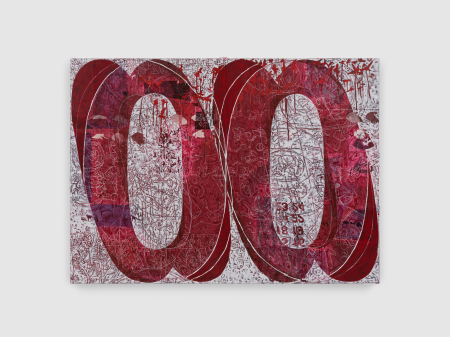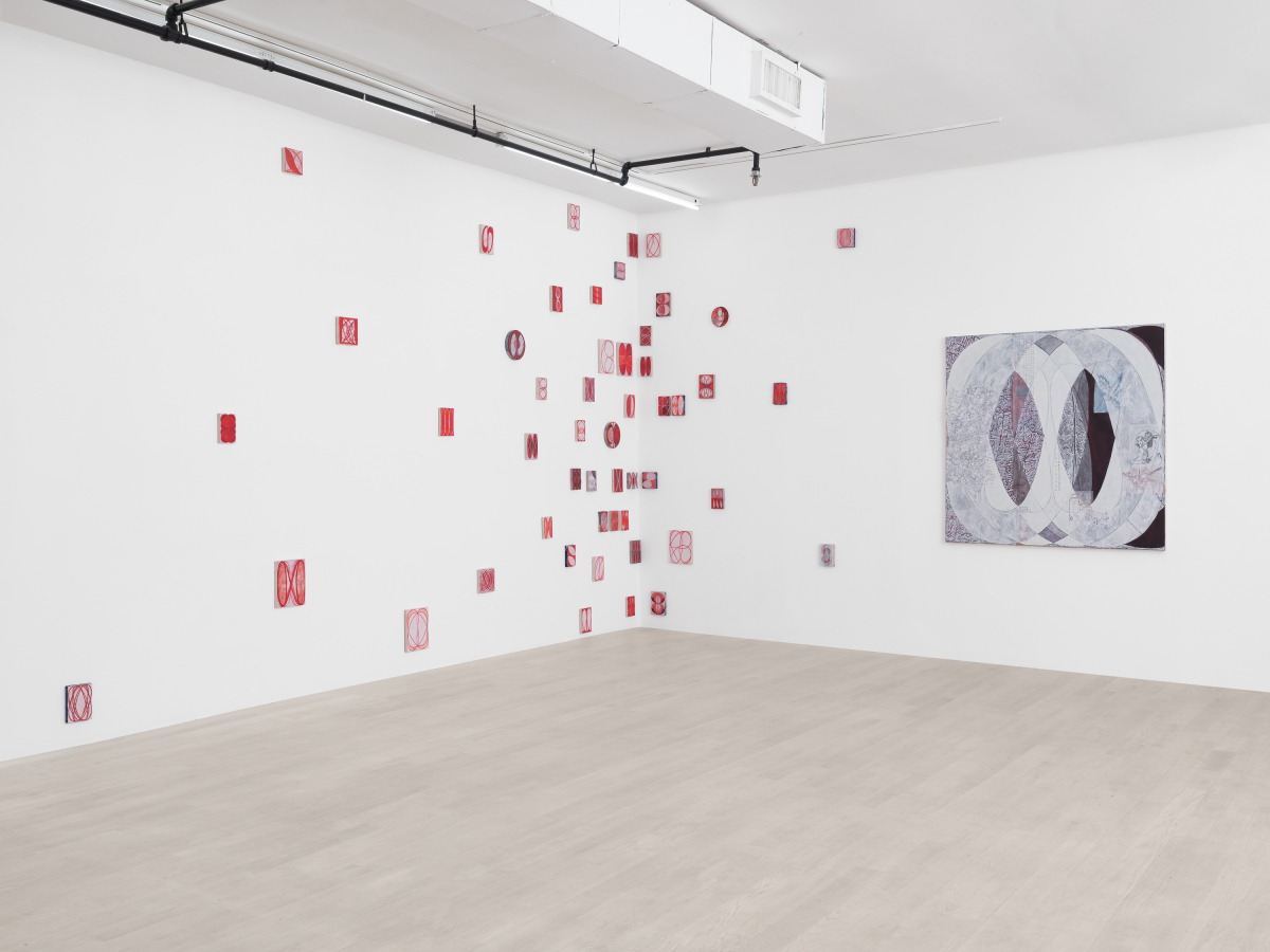 Assertive but intimate, hermetic but penetrable, Liebman’s forceful collection of rouge-hued tableaux entices the viewer with a cornucopia of signs whose signification nonetheless withdraws at the very moment of surfacing. The work resists the relentless reduction of the artwork to content, intentional or otherwise. As Susan Sontag states in Against Interpretation, “The overemphasis on the idea of content entails ... the perennial, never consummated project of interpretation.” Such interpretation for Sontag is not only limiting and unitary (looking for only one ‘true’ meaning) but ascetic, overtly rational, or “Even more. It is the revenge of the intellect upon the world. To interpret is to impoverish, to deplete the world.” This diminishment evolves, for Sontag, from the imagination of a post-mythic consciousness that seeks to strip magic and ritual from art. Thus, while Liebman’s iterative process points towards an indeterminacy which might be understood as traumatic—both personally and existentially—Gilgul, as a body of work and a concept, is recuperative, healing. Through the personal, instinctual, and idiosyncratic, the archeology of Liebman’s oeuvre yearns to excavate the space of the unsayable, to, like the coincidentia oppositorum of zero and infinity, write the sign for the unaccountable—even magical, ritual—without, as Sontag notes, “heroic pretensions or universalist goals.” Or perhaps she is just speaking in tongues.
