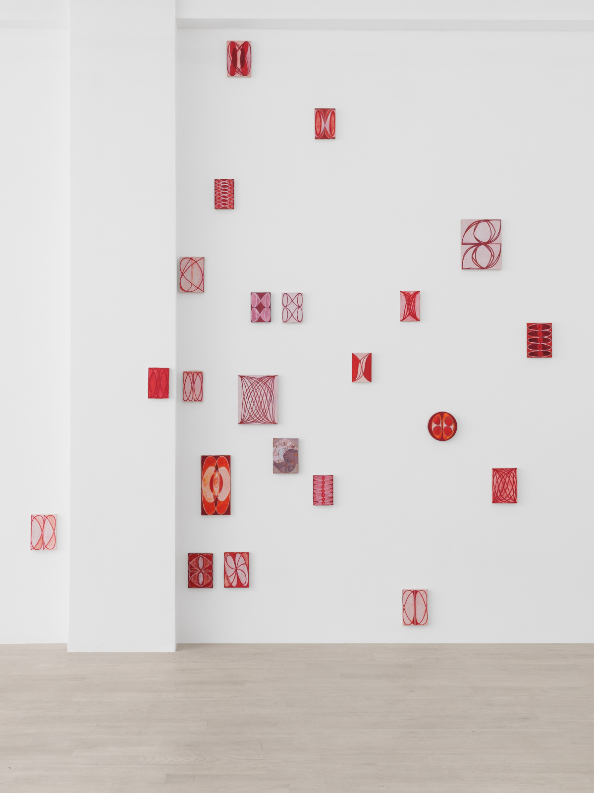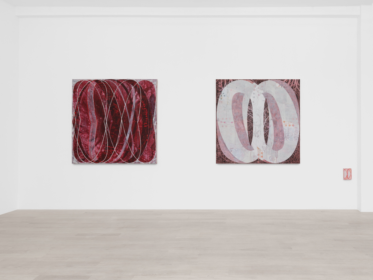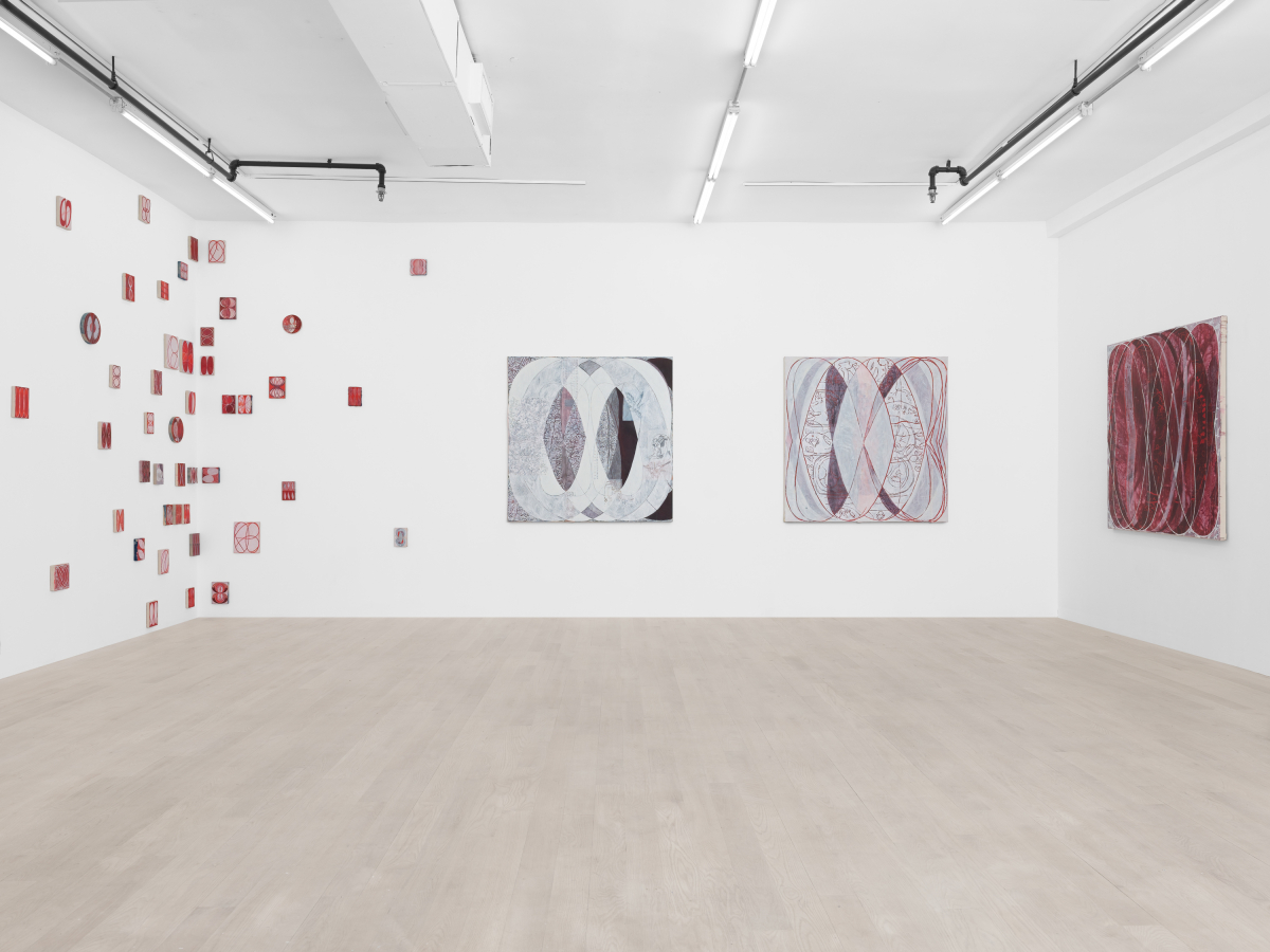 Assertive but intimate, hermetic but penetrable, Liebman’s forceful collection of rouge-hued tableaux entices the viewer with a cornucopia of signs whose signification nonetheless withdraws at the very moment of surfacing. The work resists the relentless reduction of the artwork to content, intentional or otherwise. As Susan Sontag states in Against Interpretation, “The overemphasis on the idea of content entails ... the perennial, never consummated project of interpretation.” Such interpretation for Sontag is not only limiting and unitary (looking for only one ‘true’ meaning) but ascetic, overtly rational, or “Even more. It is the revenge of the intellect upon the world. To interpret is to impoverish, to deplete the world.” This diminishment evolves, for Sontag, from the imagination of a post-mythic consciousness that seeks to strip magic and ritual from art. Thus, while Liebman’s iterative process points towards an indeterminacy which might be understood as traumatic—both personally and existentially—Gilgul, as a body of work and a concept, is recuperative, healing. Through the personal, instinctual, and idiosyncratic, the archeology of Liebman’s oeuvre yearns to excavate the space of the unsayable, to, like the coincidentia oppositorum of zero and infinity, write the sign for the unaccountable—even magical, ritual—without, as Sontag notes, “heroic pretensions or universalist goals.” Or perhaps she is just speaking in tongues.